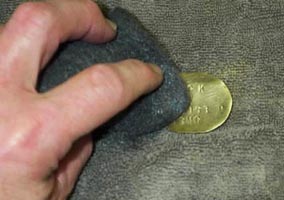 STEP 2: On the stamped side of your dog tag, clean the surface of any skin and surface oils by brushing it lightly with the fine steel wool. | |